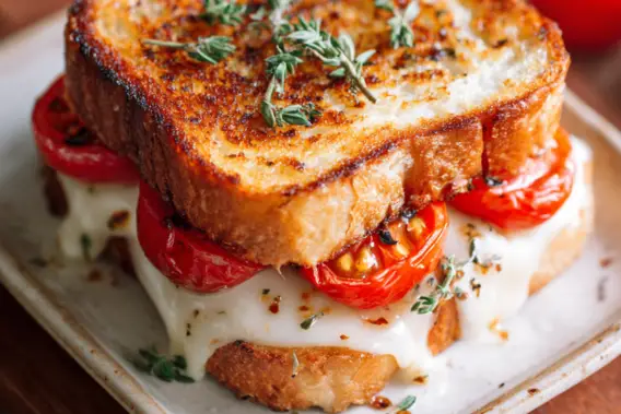 Let the sandwich rest for a minute before cutting — this helps the cheese set slightly so it doesn’t ooze out. Slice diagonally (because somehow, it really does taste better that way) and serve immediately.